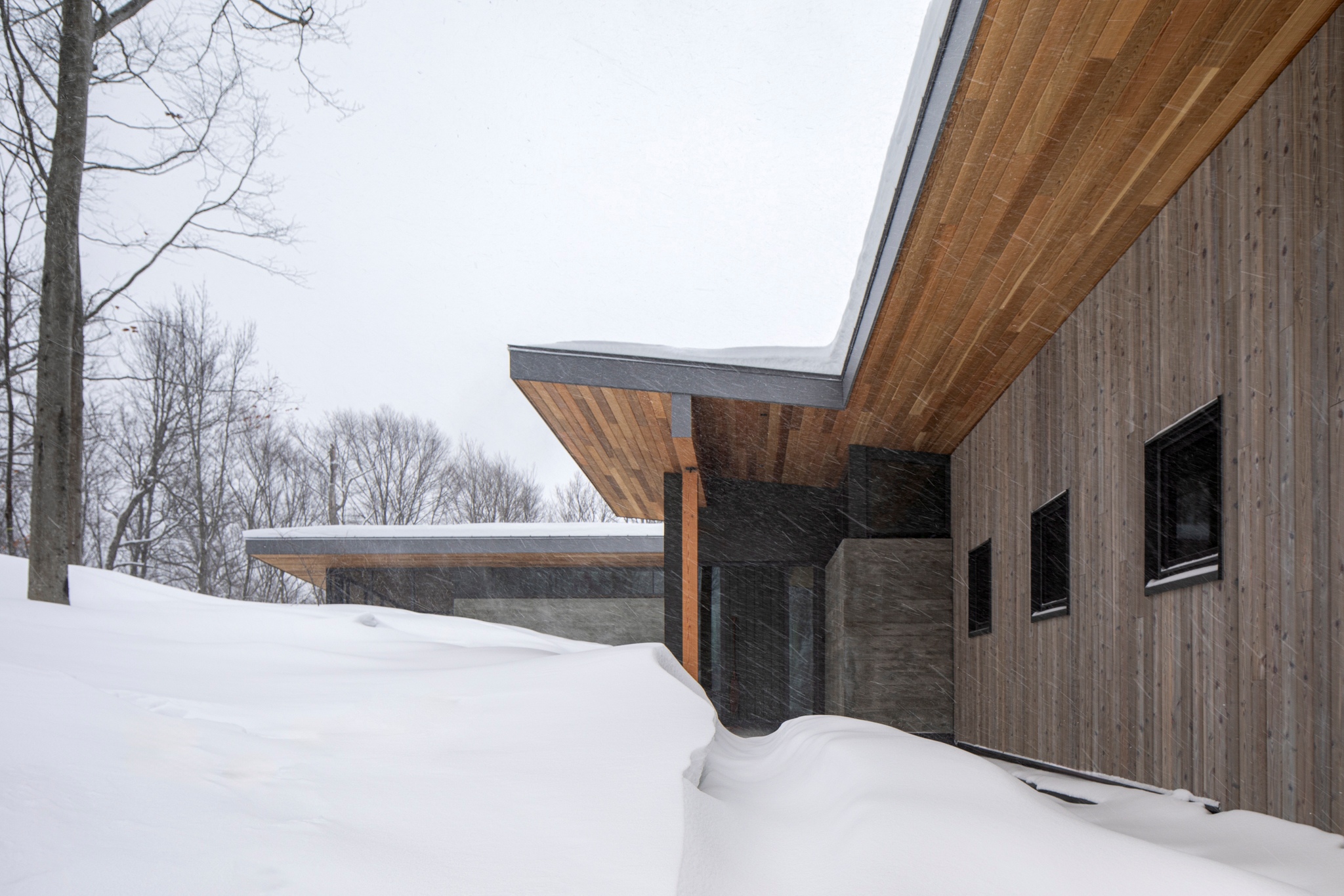 Built on a long-held 8.5-acre family parcel in Wentworth-Nord, the Laurentian Forest House is a second home for a family from the United Kingdom, allowing them to reconnect with relatives who reside nearby. From the outset, the project was shaped as much by memory as by a deep appreciation for the land it occupies.